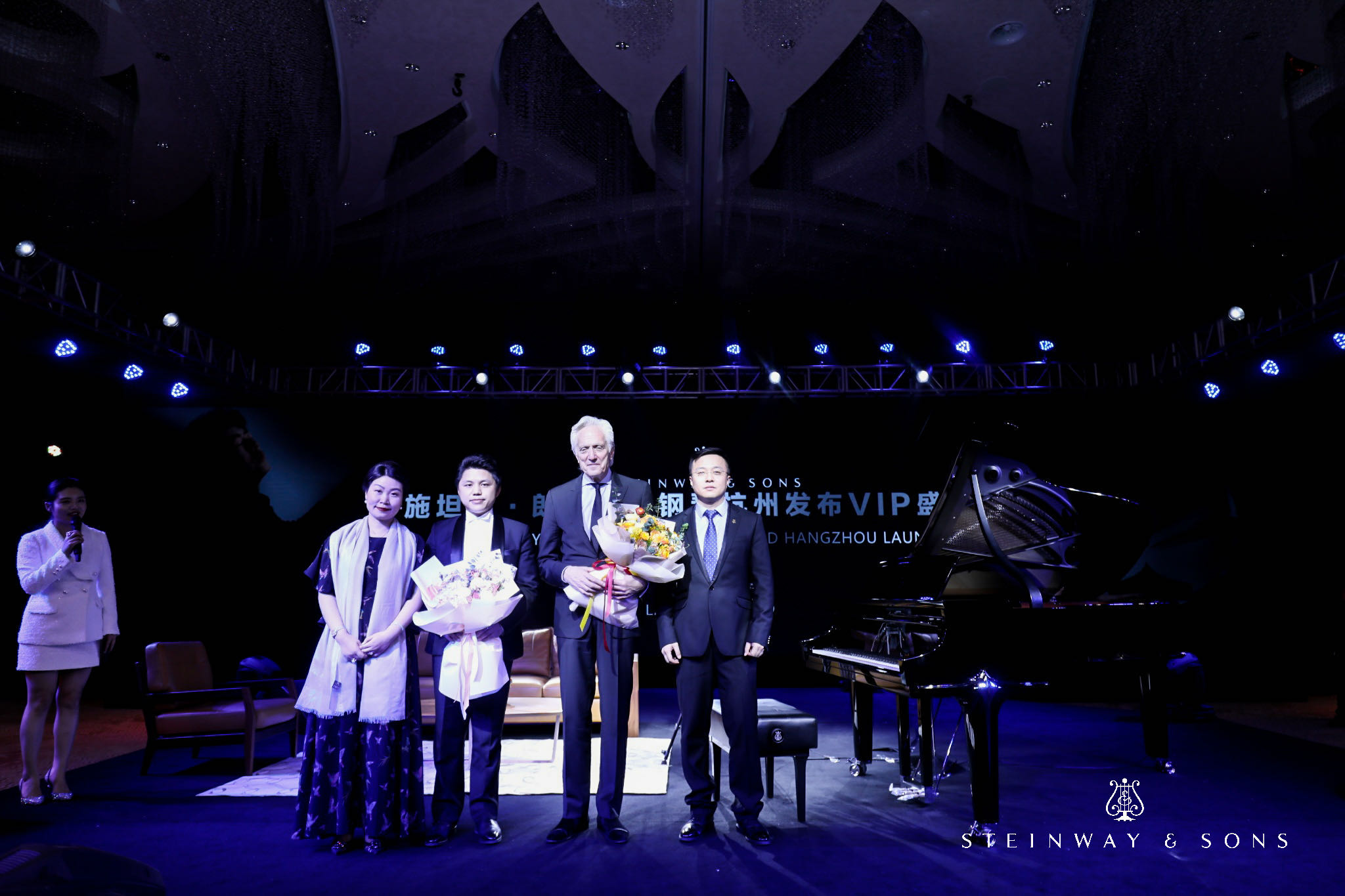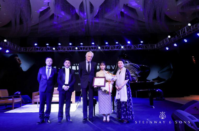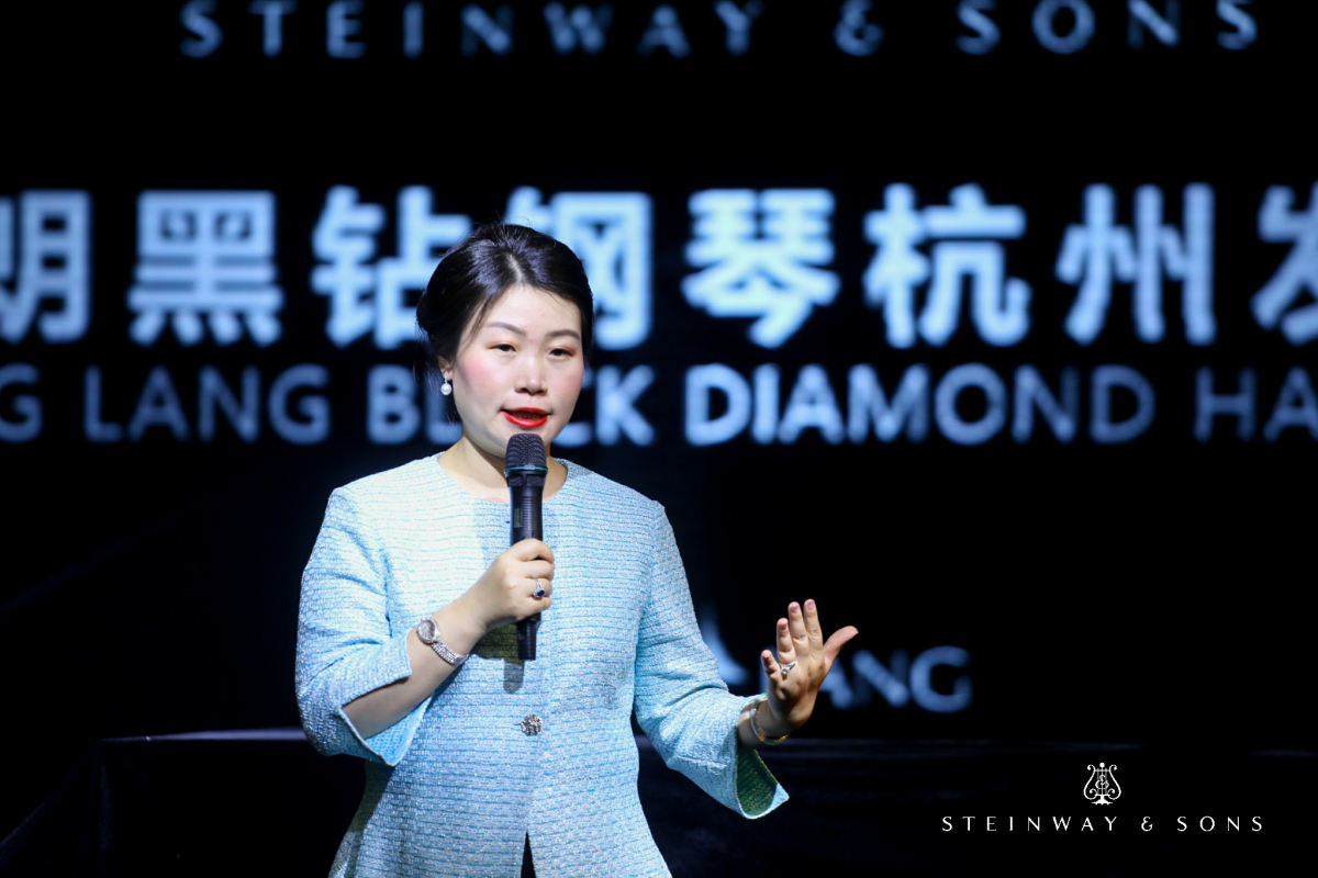 施坦威亚太区总裁位炜女士与杭州三毛琴行总经理蒋洋先生共同揭幕施坦威·郎朗黑钻系列钢琴